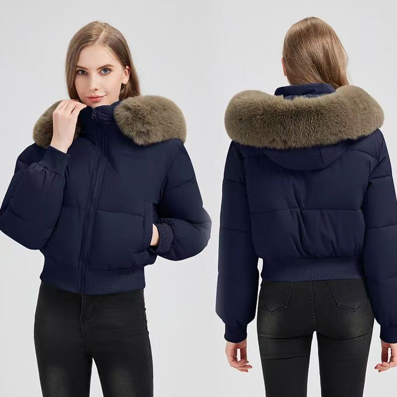 T588-739 Winter women's coat with large fur collar for warmth